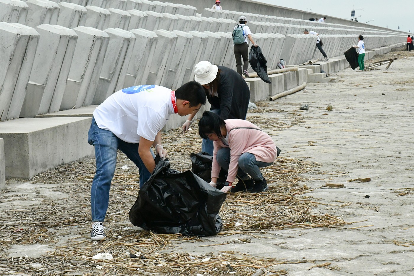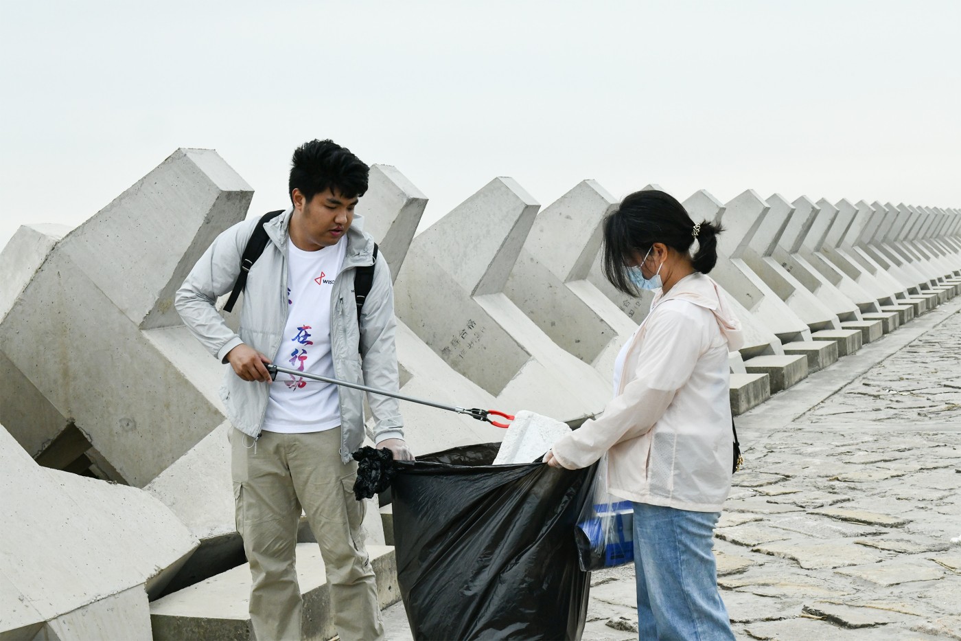 On the bus to the event location, participants engaged in a quiz on environmental knowledge, fostering camaraderie and deepening ecological awareness, followed by volunteers donning gloves, picking up trash bags, and immediately undertaking the role of "cleaning crew". They meticulously cleared plastic waste, including beverage bottles, foam, and plastic bags, from under the breakwater's concrete beams and "twisted king blocks".