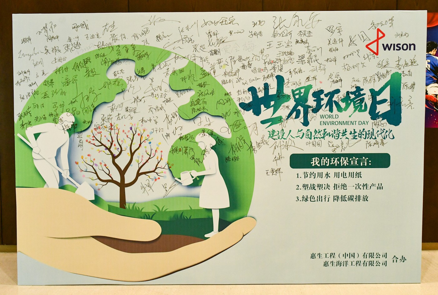 Every day is an environmental day, and everyone is an activist. On June 5th, World Environment Day, WEL& WNE called on all employees to make environmental commitments: conserve water, electricity, and paper; decisively combat the use of disposable products; adopt green travel to reduce carbon emissions. The activity received a positive response from Wison personnel, with everyone eagerly signing the environmental commitment board and pressing their handprints on a tree representing environmental care and nurturing greenery.