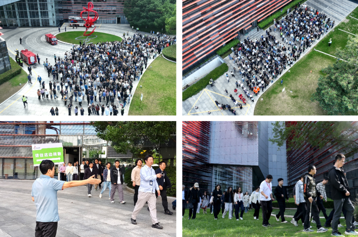 At 10:00 AM on October 24, the alarm sounded, marking the official start of the drill. The on-site smoke simulation system was activated, and the central control room promptly issued evacuation instructions. A total of 3,148 employees from various buildings evacuated safely along designated routes, reaching five designated assembly points within just ten minutes. Throughout the process, relevant departments worked closely, maintaining orderly conduct on site. Meanwhile, firefighters carried out a fire-extinguishing demonstration, along with drone-based fire suppression and aerial water-spraying displays using ladder trucks. The exercise effectively tested the company’s emergency response and coordination capabilities and was successfully completed.