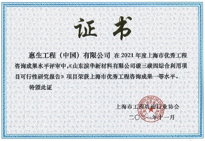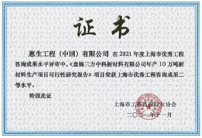 近日,由上海市工程咨询行业协会组织的“2021年度上海市优秀工程咨询成果水平评审”结果出炉,惠生工程两个项目榜上有名,其中“山东滨华新材料有限公司碳三碳四综合利用项目可行性研究”喜获上海市优秀工程咨询成果一等奖,“盘锦三力中科新材料有限公司年产10万吨新材料生产项目可行性研究”获二等奖。