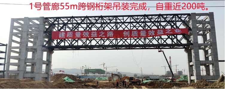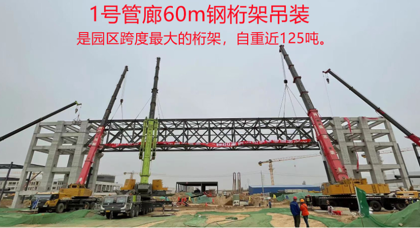 一标段园区最重钢桁架管廊完成吊装就位
