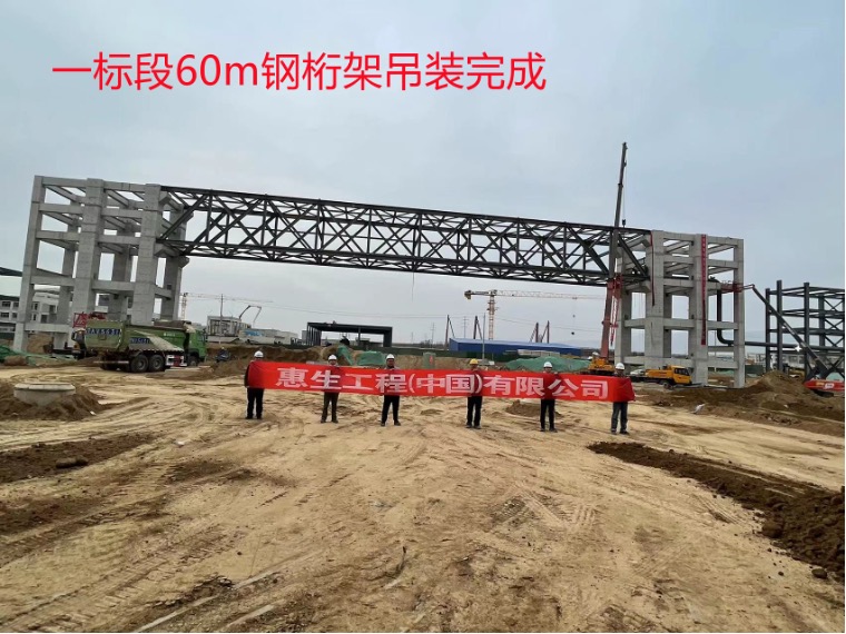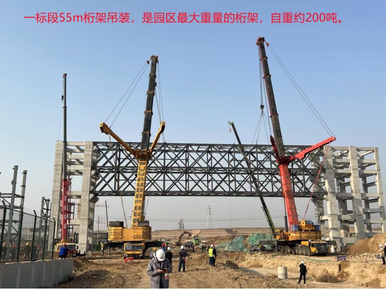 一标段园区最重钢桁架成功吊装完成