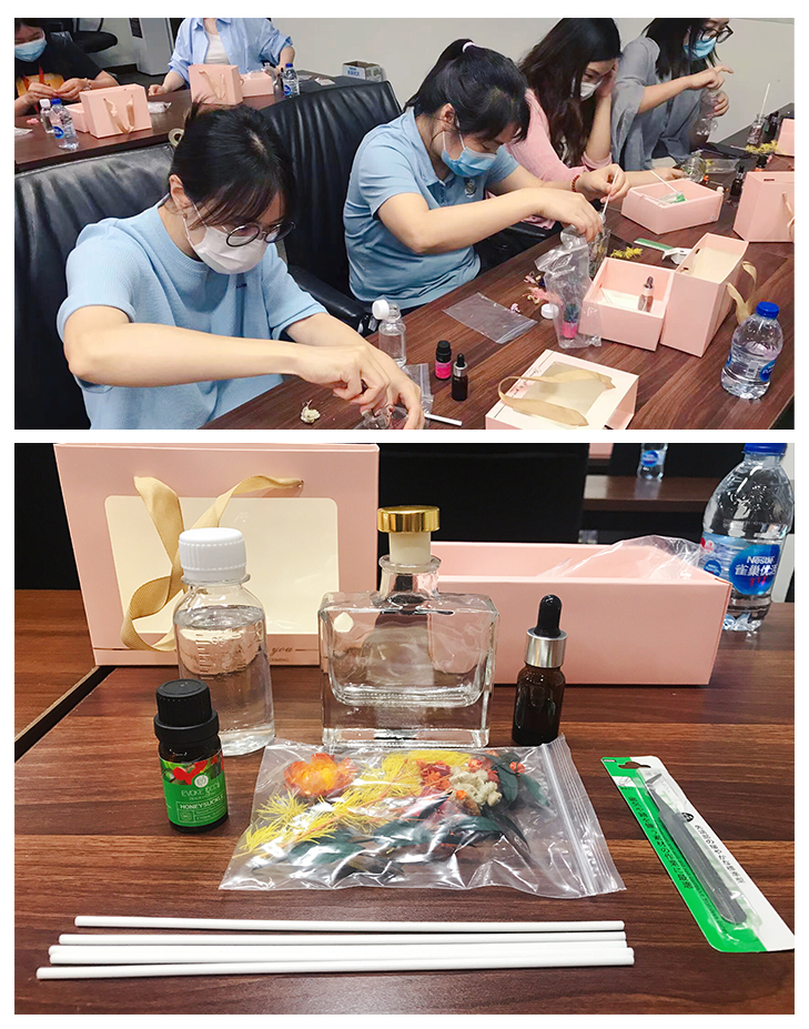香薰精油和多肉景观,都是时下流行的一种用来缓解压力,释放心情,提高生活质量的一种居家摆设。活动上,老师给到场的每人发放一份材料包,精细讲解每一步的制作步骤。在学习了制作方法后,员工们根据自己的喜好挑选心仪的素材,从造型摆放到色彩搭配,精心设计着属于自己的作品。
