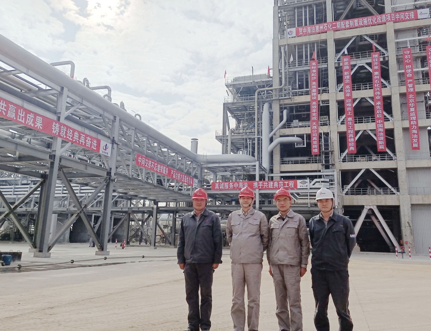 2023年1月5日,惠州石化二期配套制氢设施优化改造项目如期实现了中间交接。这一天的现场彩旗迎风招展、借势飘拂,横幅错落有致、跌宕昭彰,内容更是丰富多彩:兄弟单位大书特书“为惠化再添黑马”、“展风采”、“显辉煌”、“谱新篇”、“助发展”各显神通、辞丰意雄,我项目部献一幅“新思路、新理念、高效率、迎难而上、惠生工程再铸经典”,体现出创新为要、求真务实的价值追求。
