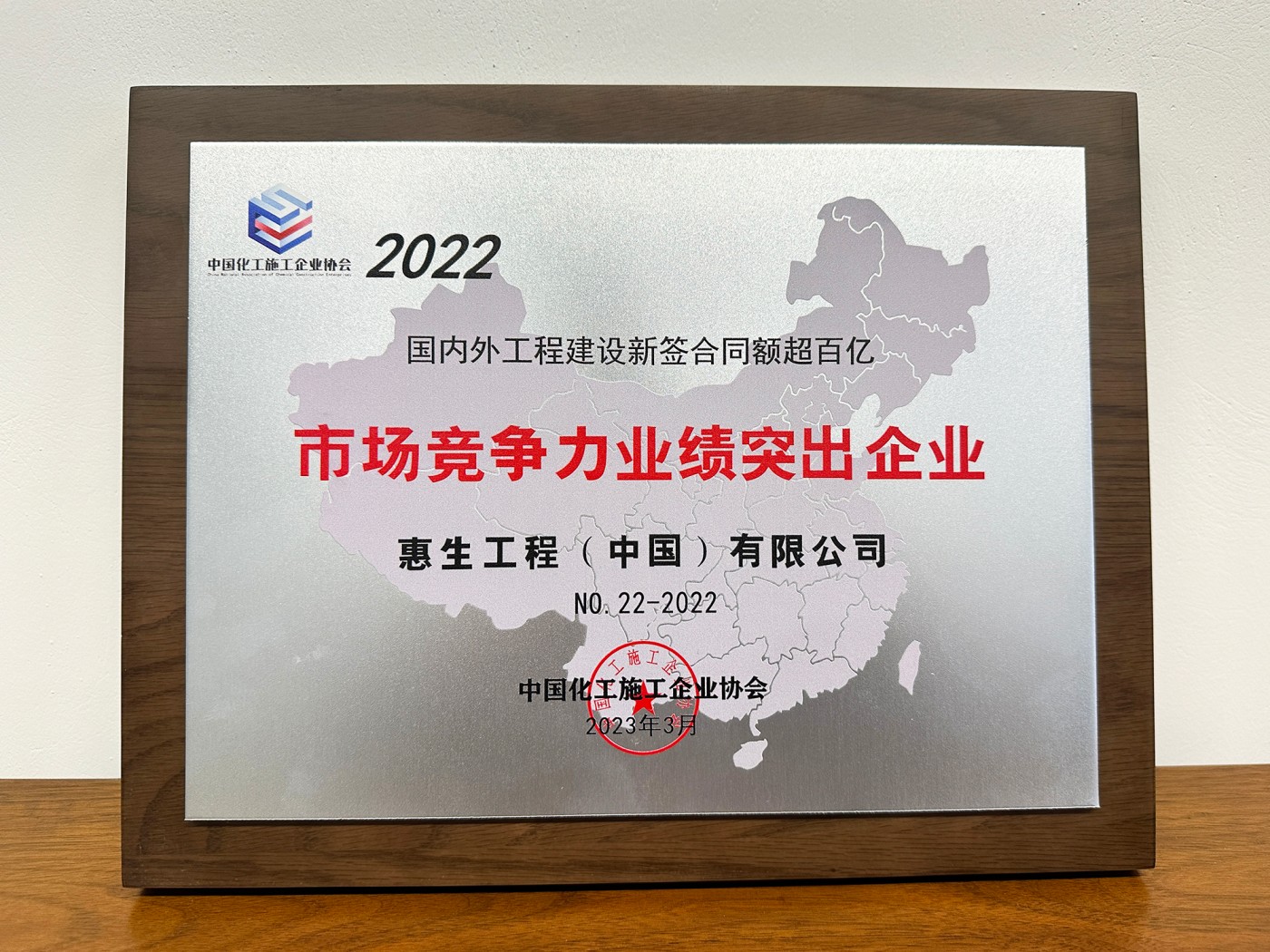 成绩来之不易,惠生人坚持不懈的追求获得了行业的认可,近日中国化工施工企业协会为惠生工程颁布了“市场竞争力业绩突出企业”奖项。惠生工程将不负客户的信任和协会的肯定,继续为客户提供最优质的服务。