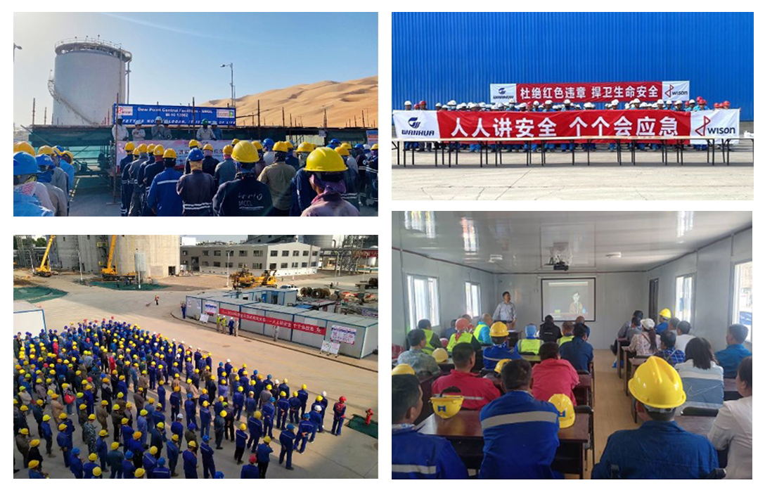安全月期间,惠生工程海内外项目部均举办了安全月启动仪式,项目经理出席并深度参与。各地通过宣传横幅、标语、招贴画、安全月主题讲座、视频学习等形式进行理论培训,提升风险防控意识,相继开展了安全月宣传咨询、试题问答、隐患排查等活动。