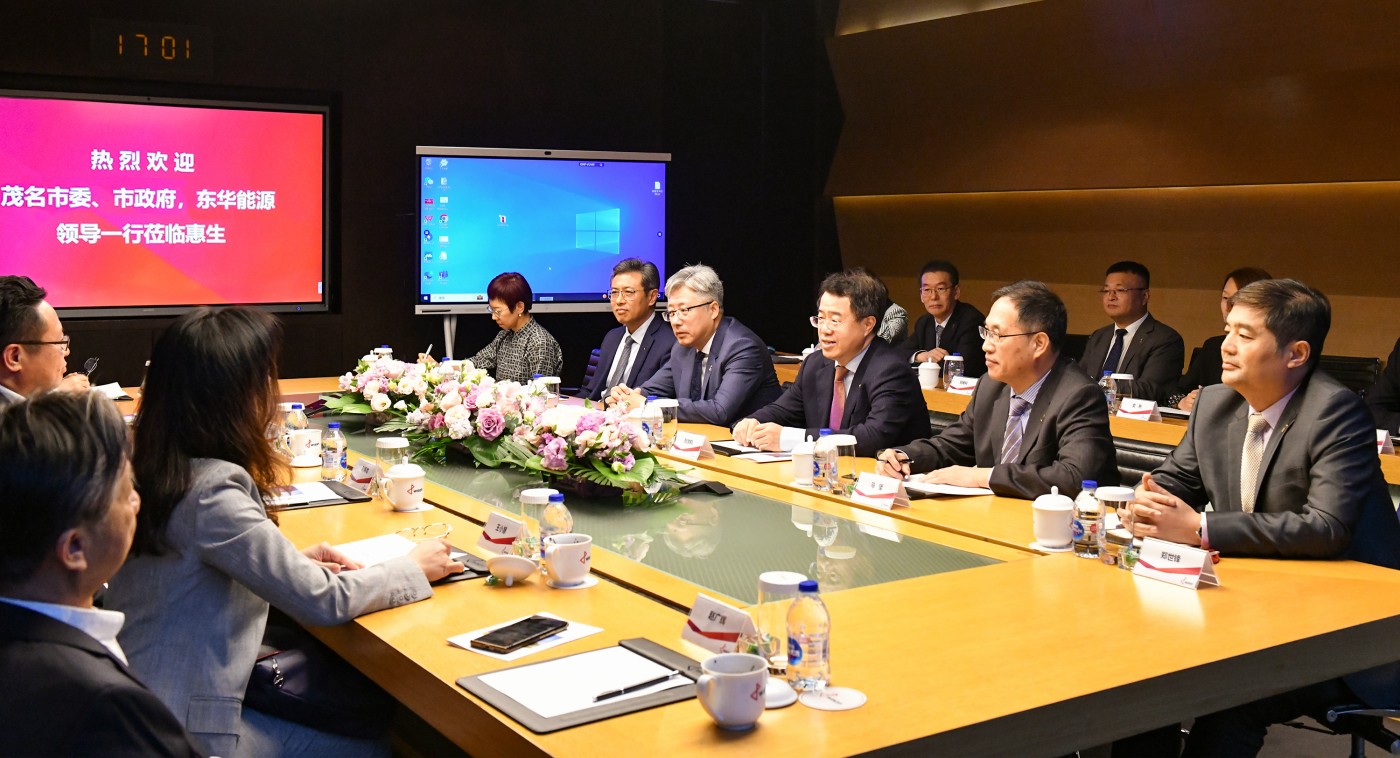 2023年10月11日,茂名市委常委、副市长朱海龙、东华能源股份有限公司董事长王铭祥一行到访惠生总部,惠生集团总裁刘洪钧携工程总裁周宏亮、海工高级副总裁安文新等高层领导接待来访客人并座谈交流,会议就推进多方合作事宜进行洽谈。