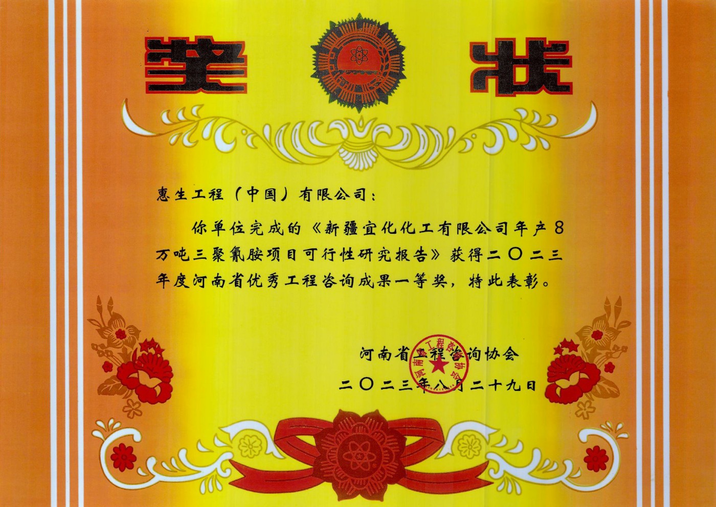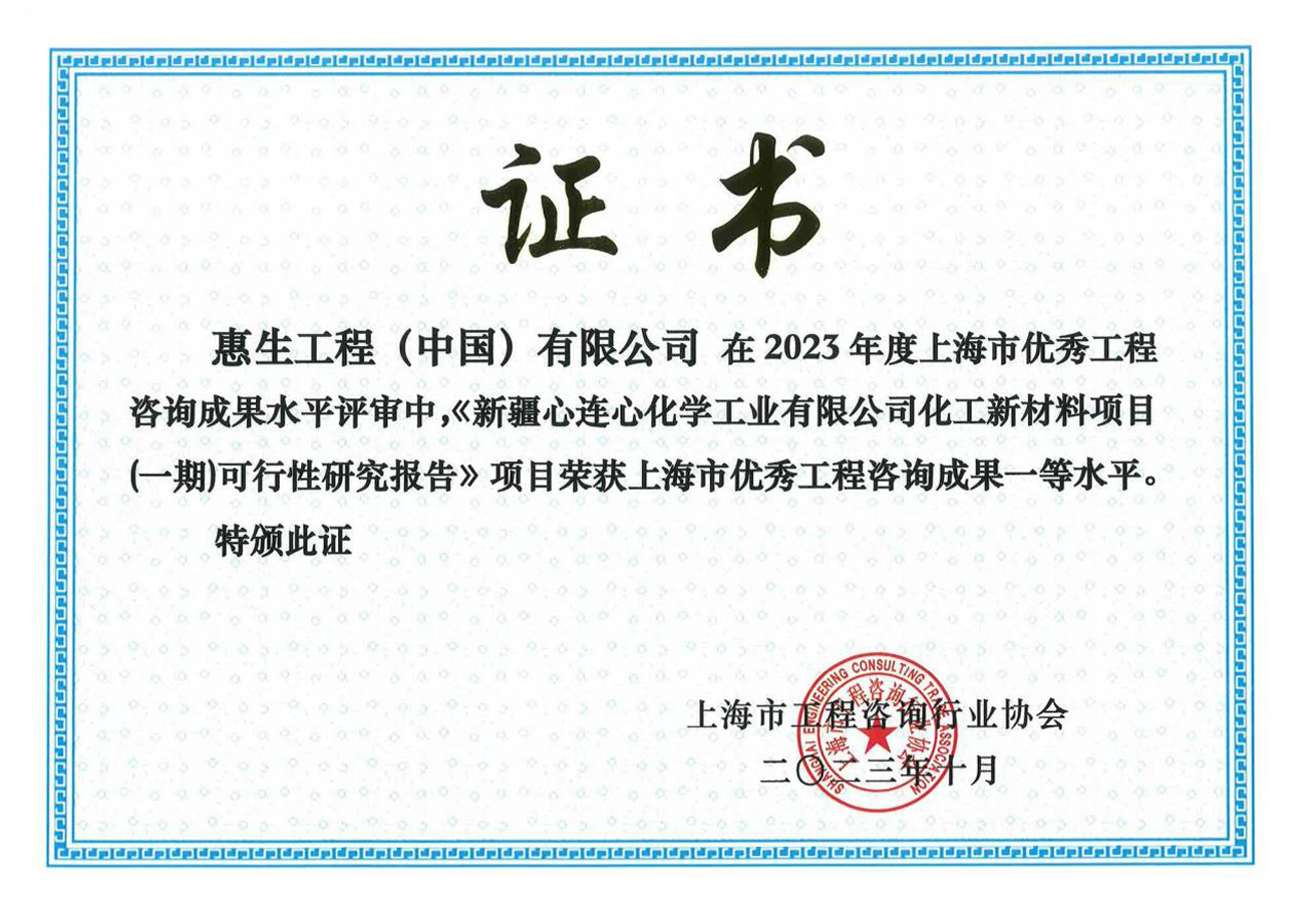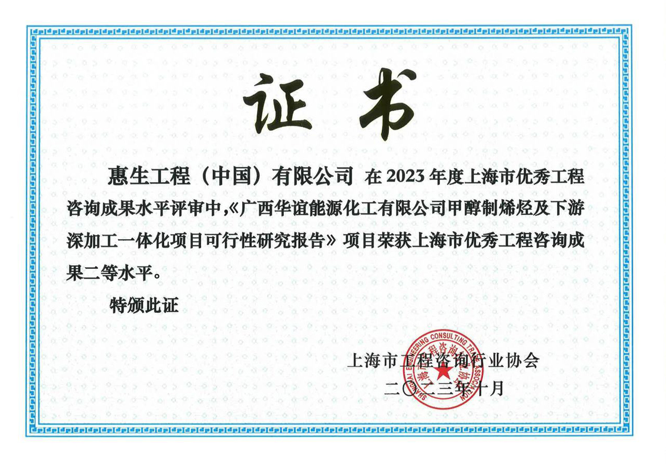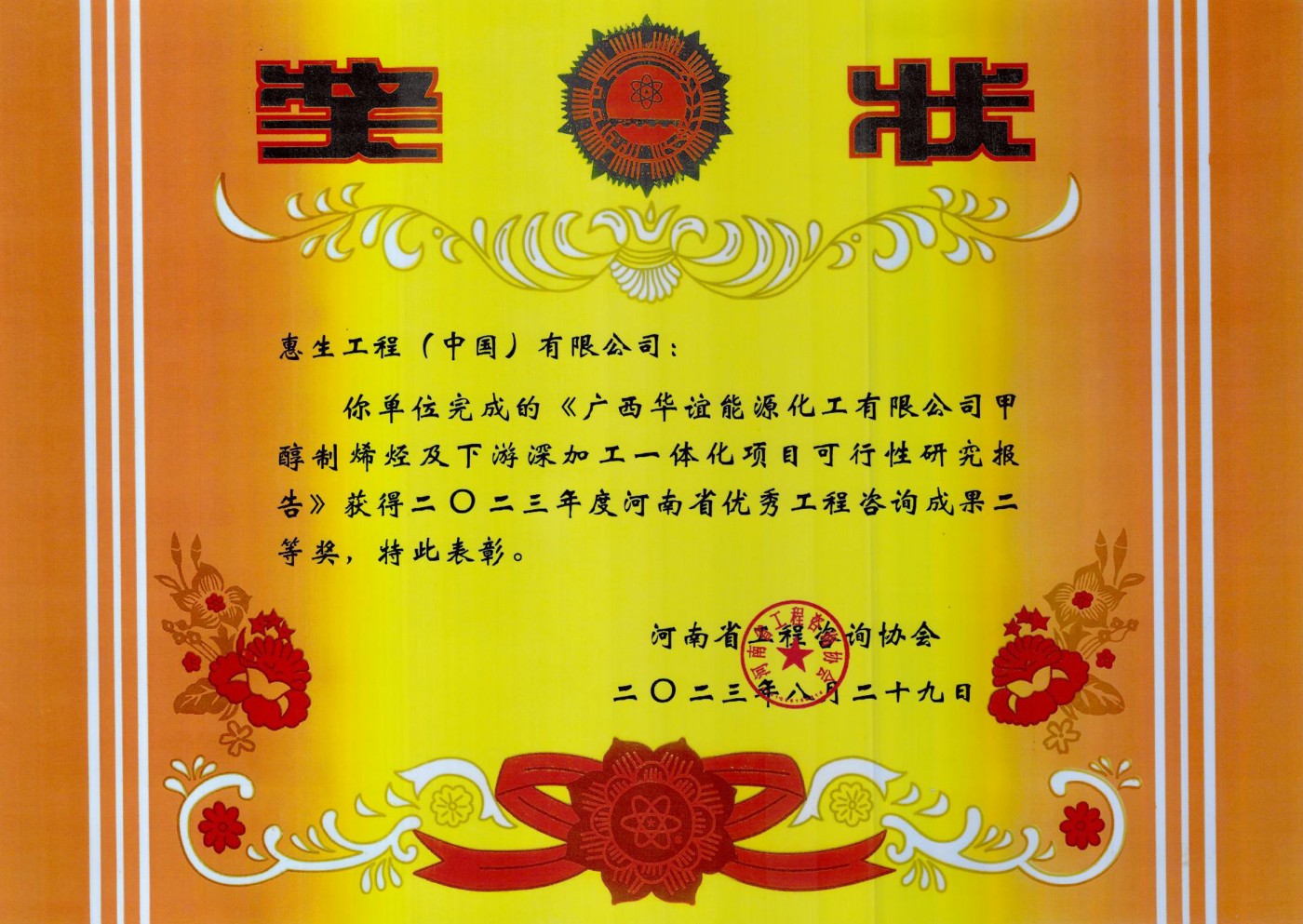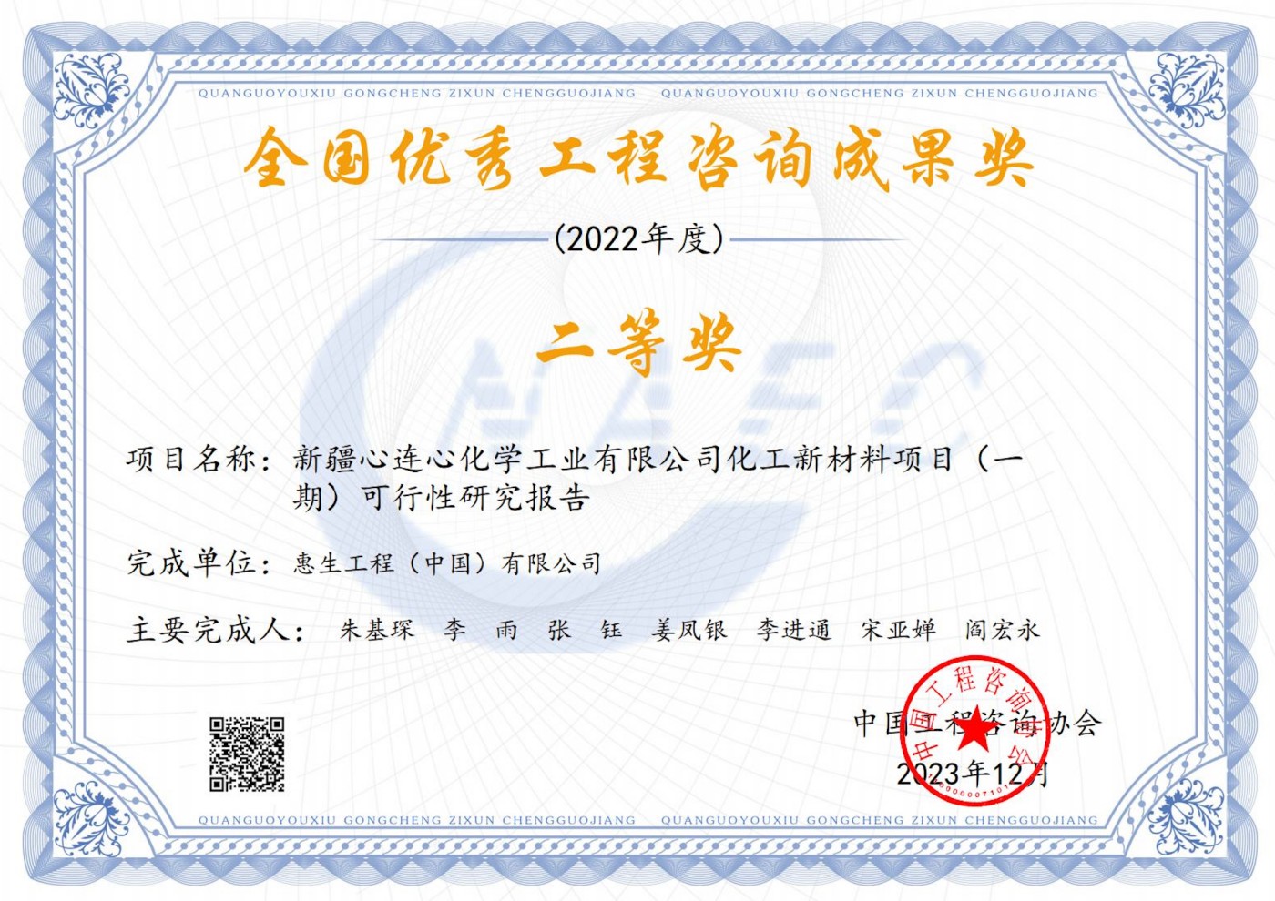 2023年度全国及省部级优秀工程咨询成果奖评选落下帷幕,惠生工程申报的新疆心连心新材料项目、广西华谊甲醇制烯烃及下游深加工一体化项目、晋控新恒盛高性能新材料等咨询项目,共获得8项优秀成果奖,年度奖项数量创下新高,在国家、上海市及河南省工程咨询协会评奖中均取得优异成绩。