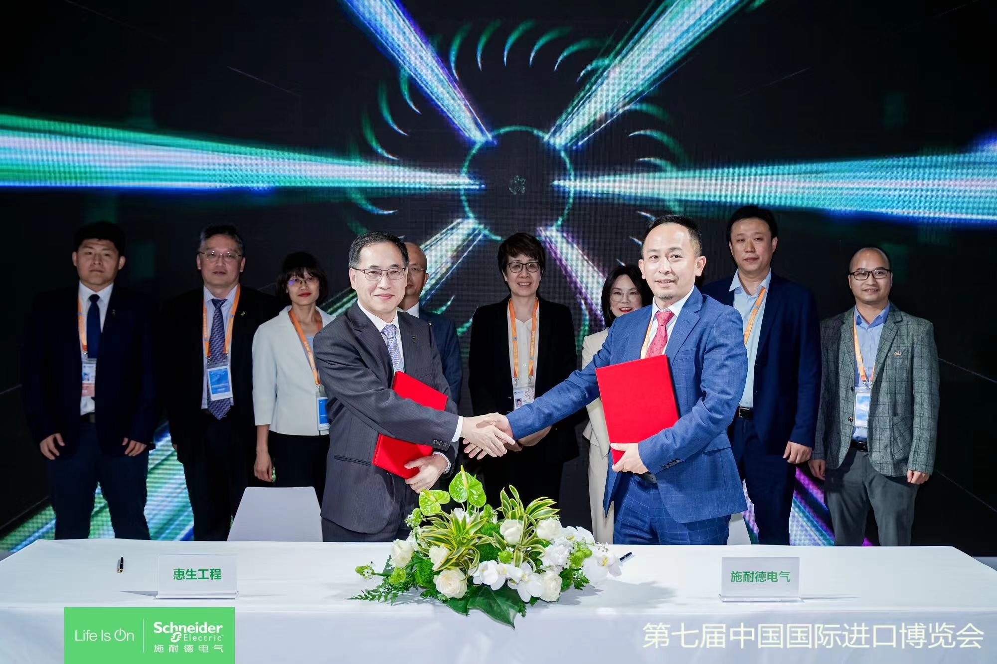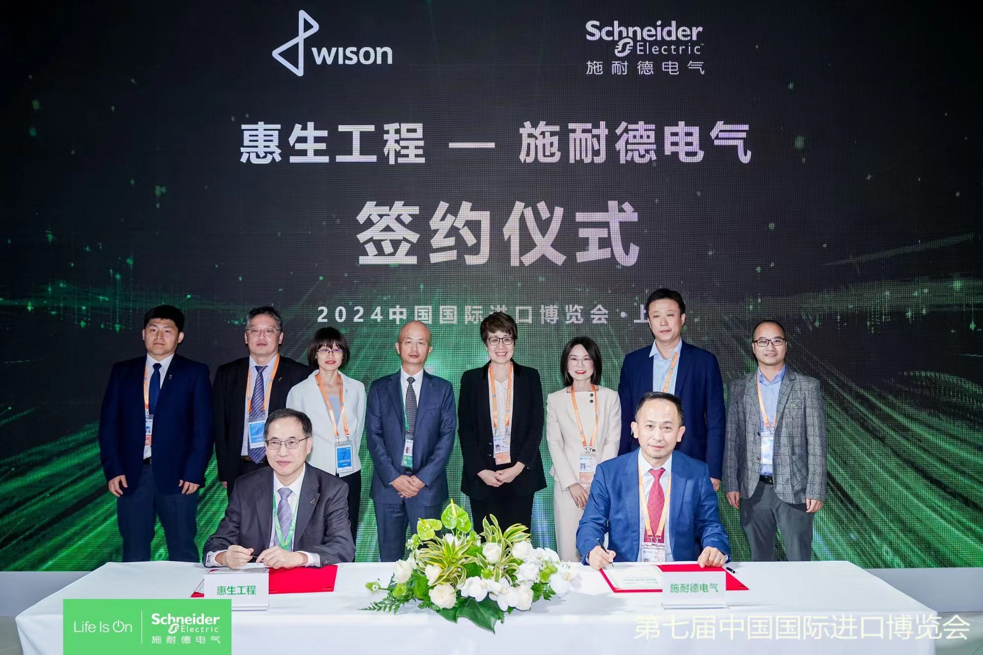 2024年11月6日,惠生工程(中国)有限公司与施耐德电气(中国)有限公司在上海进博会施耐德电气展位签署战略合作协议,双方将进一步深化在绿氢一体化创新、EPC数字化转型、供应链减碳、EPC工程国际化、海上浮式工程电气解决方案等新能源及能源化工领域的深度合作,共同推动智能化解决方案的联合开发与应用,助力双方在能源转型战略上的全面升级。惠生工程高级副总裁马坚、副总裁吕建宁、施耐德电气高级副总裁张炜、副总裁夏学英等出席了签约仪式。