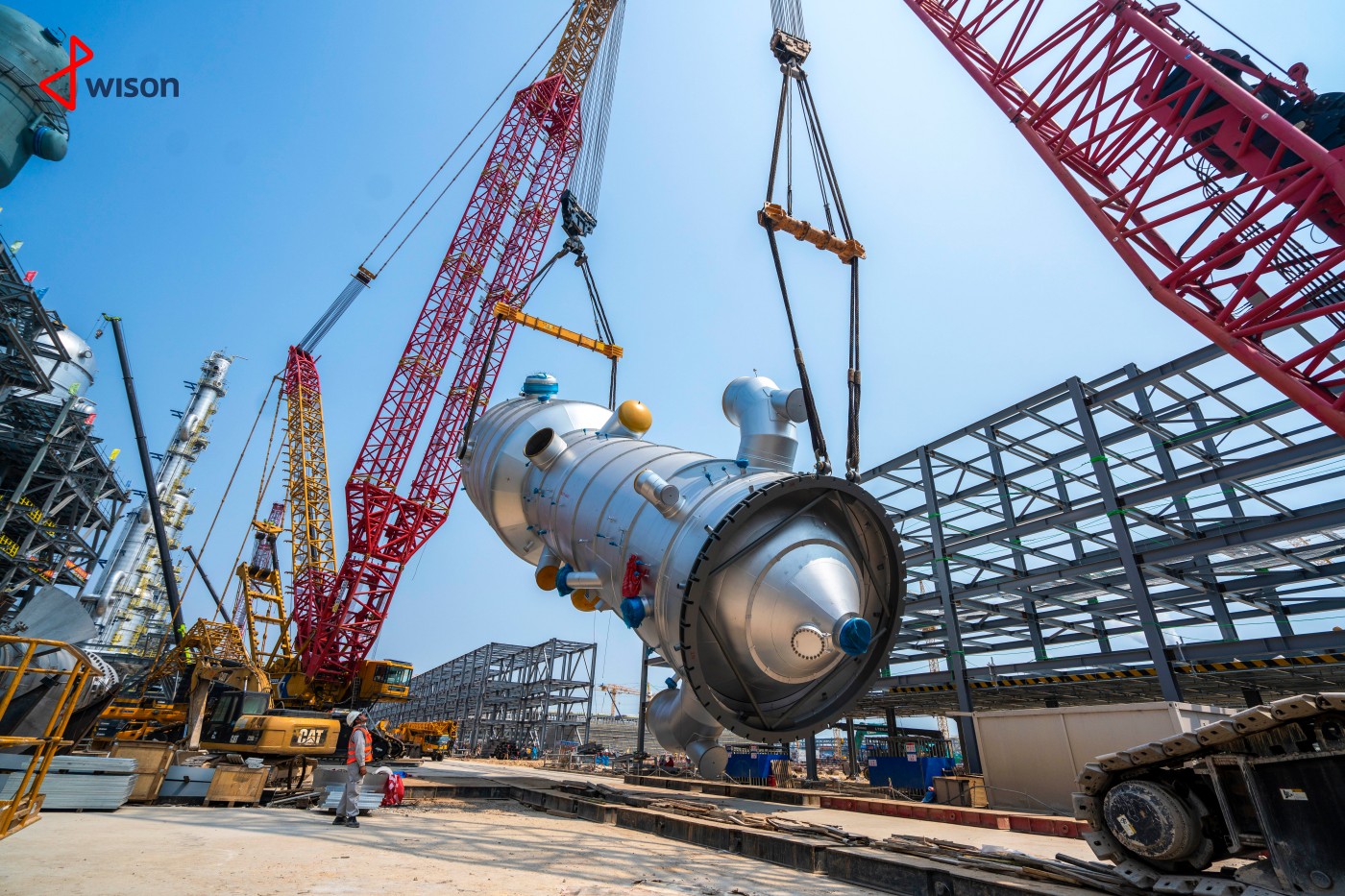 2025年3月22日,惠生工程在广西华谊能源化工有限公司100万吨/年甲醇制烯烃(MTO)项目中,成功将全球最大规模MTO装置反应器精准无误地整体安装至设备基础之上,标志着项目建设取得关键进展,为后续工程的顺利推进奠定了坚实基础。