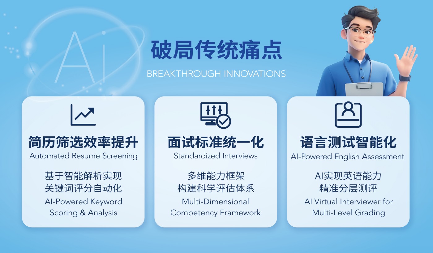在管理层的支持下,通过对AI服务全面评估和多轮真人对比测试,惠生工程近期正式引入AI技术赋能招聘工作,从简历筛选到人才画像,从虚拟人结构化面试到英文口语测试,AI工具在适用目标群体的招聘工作中展现出显著成效。
