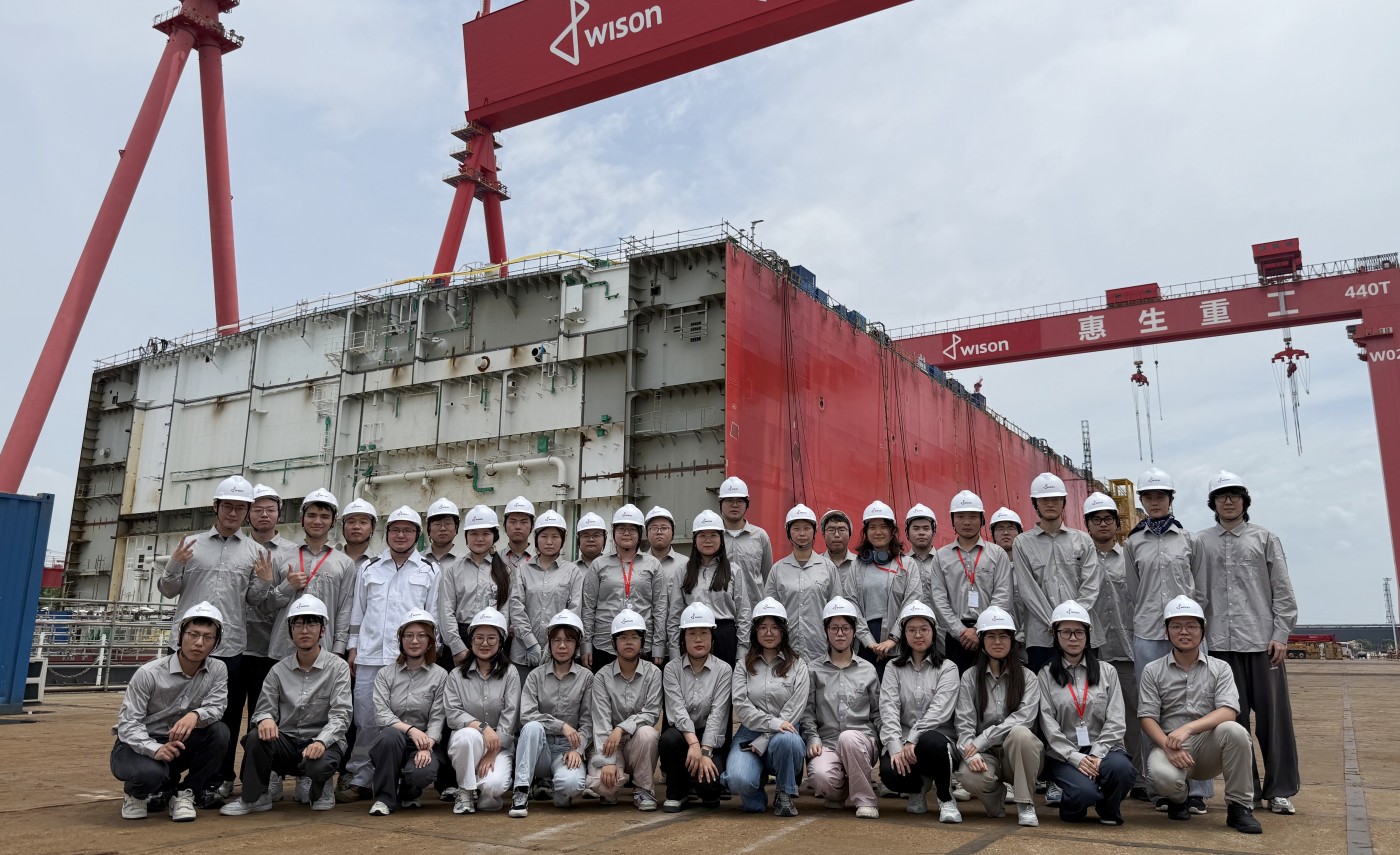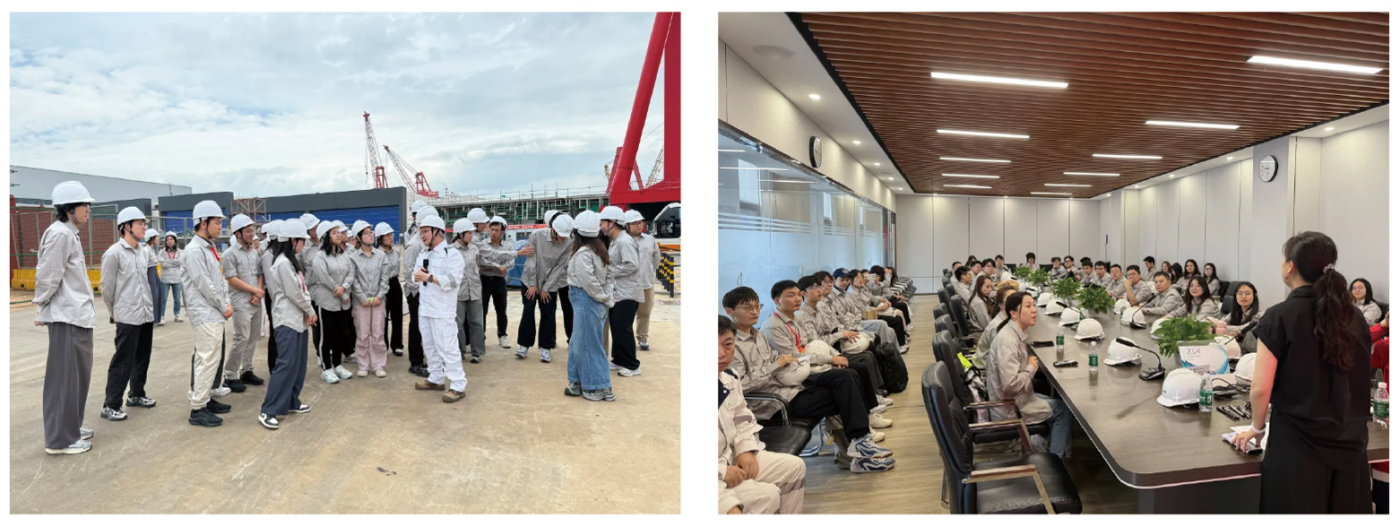 8月7日,新生们踏上了南通基地的研学之旅,将理论学习与实践感知紧密结合。清晨出发,深入项目现场,通过基地座谈、项目详介及实地参观,书本知识变得触手可及。尤其是震撼的FLNG云顶项目实景,让新生们直观感受到工程落地的宏伟规模与复杂挑战,极大增强了投身事业的信心与使命感。