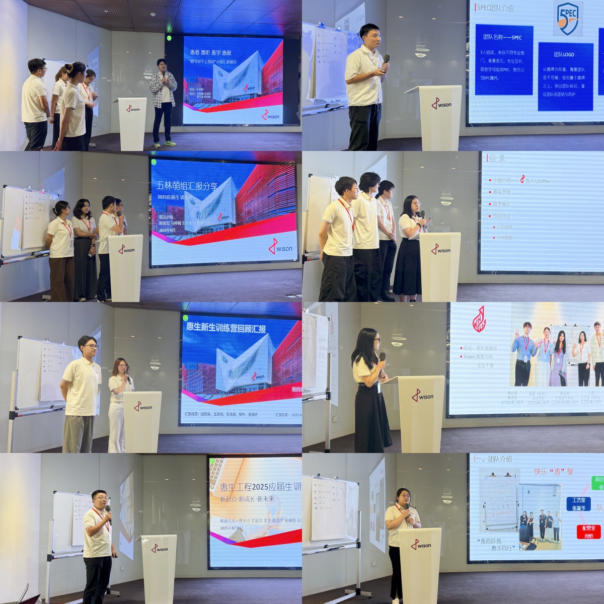 仪式在精彩的集训回顾视频中拉开序幕。八个小组依次登台,汇报展示了数日来的学习成果与深刻感悟。一位新星在分享中动情表示,无论是专业课程的系统性、主题活动的创造性,还是南通基地的震撼性,都令他印象深刻;不仅提升了专业认知,更深切感受到惠生大家庭的温暖与蓬勃朝气,激发了他渴望融入团队、并肩奋斗的热忱。