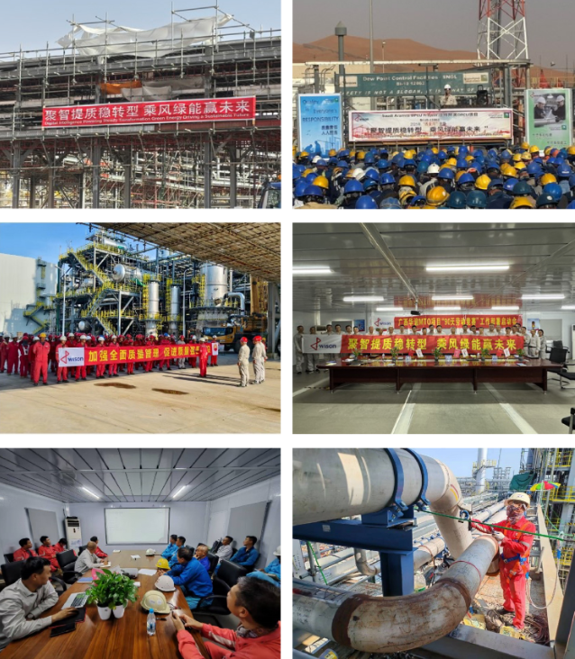4. 項目現場築牢質量防線,多措並舉夯實質量根基:各項目部積極響應“質量月”活動號召,將質量管控理唸深度融入一線施工全流程。其中,沙特DPCU項目通過全流程QC介入焊接環節、嚴格焊條全週期管控、優化焊接作業環境等舉措,實現焊接質量與作業效率雙提昇;廣西華誼MTO項目則嚴格落實質量報驗舉牌共檢製度,並建立焊工激勵與動態退出製度,切實強化全員質量責任意識。各項目都採取了各層次的質量措施,有效預防質量問題重複髮生,大幅降低各環節質量通病,爲項目高效推進、優質交付提供堅實保障。